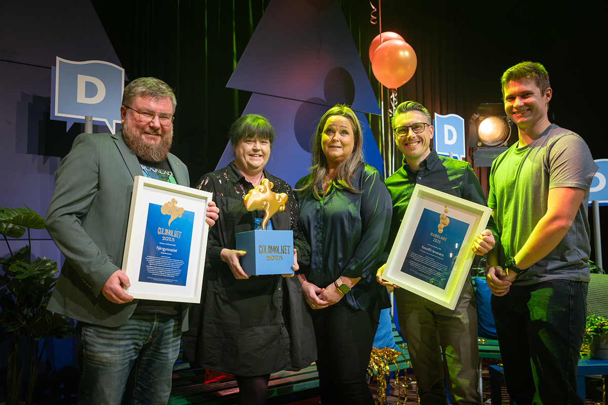 Ett stort grattis till årets mycket välförtjänta vinnare av Guldmolnet och Bubblaren: Fjärrgymnasiet, Anderstorpskolan, Skellefteå kommun och Fossilfri leverans, VTI, Statens väg- och transportforskningsinstitut. Priserna delades ut under Guldkvällen den 3 december.